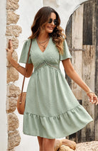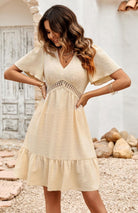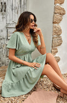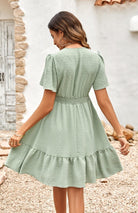 هذه الفستان الأنيق مثالي لحفلات الزفاف في الهواء الطلق. قصته السائلة وتفاصيله الراقية تضيف لمسة من الرقي. متوفر بعدة ألوان لتناسب أسلوبك.