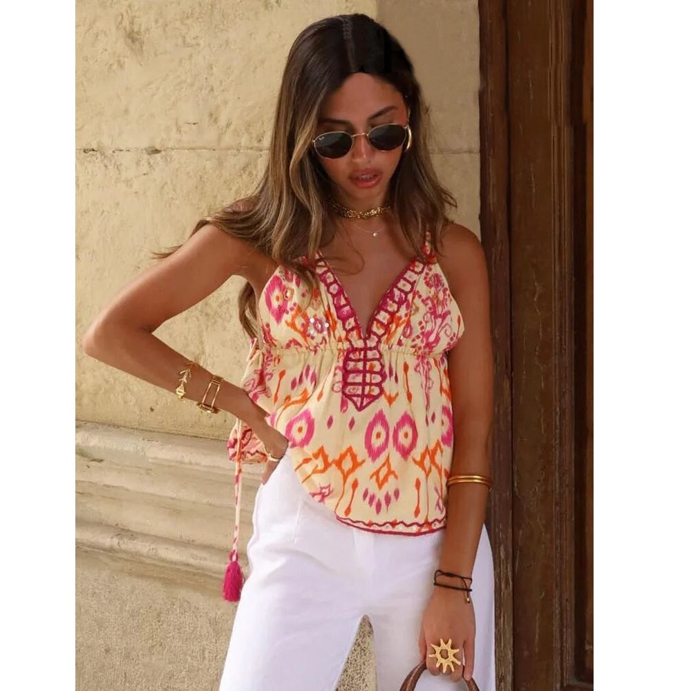 Louna | Blouse Chic Sans Manches – Élégance Décontractée Et Couleurs Solaires