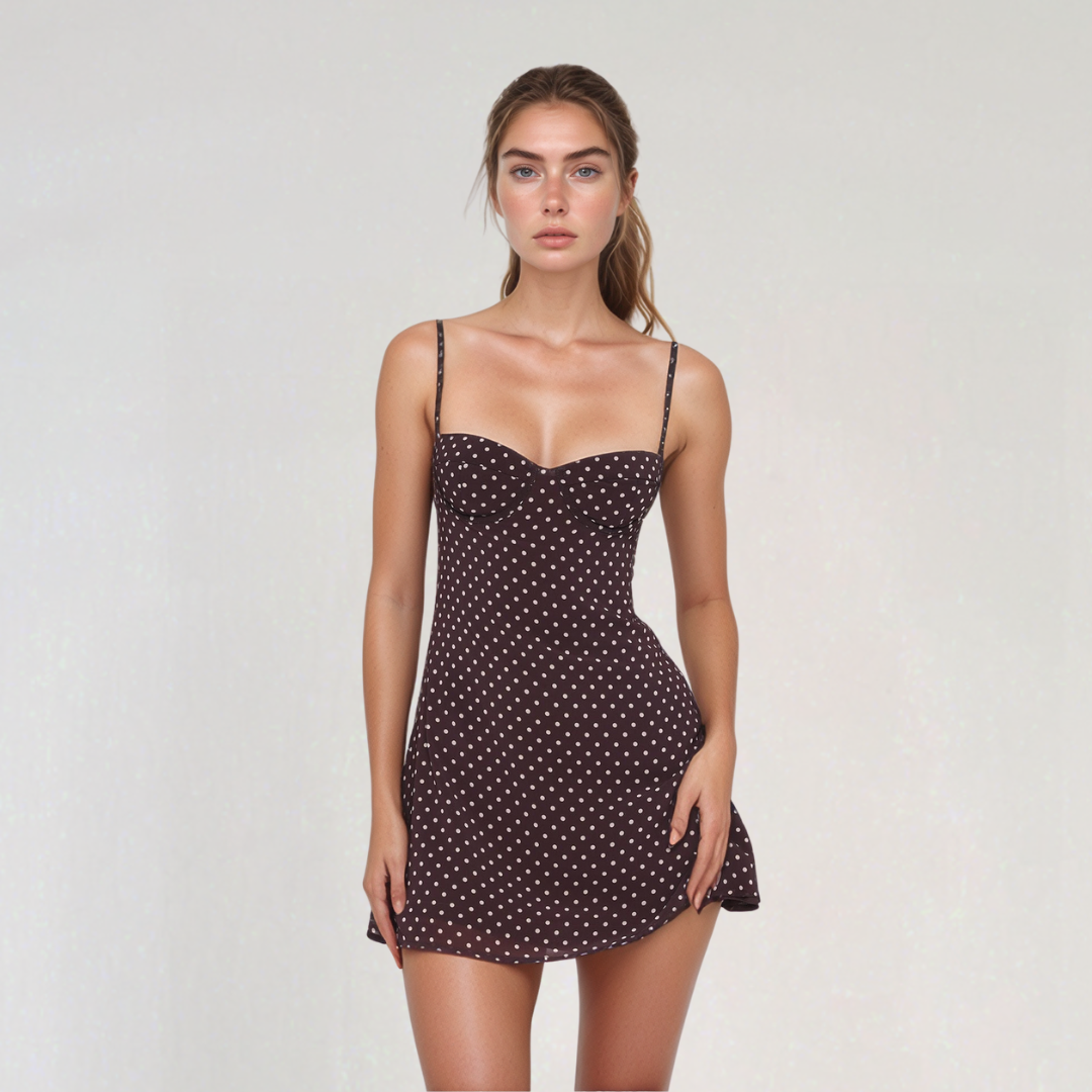 Béatrice | Krátké šaty s puntíky – čokoládový vzor pro vintage chic styl