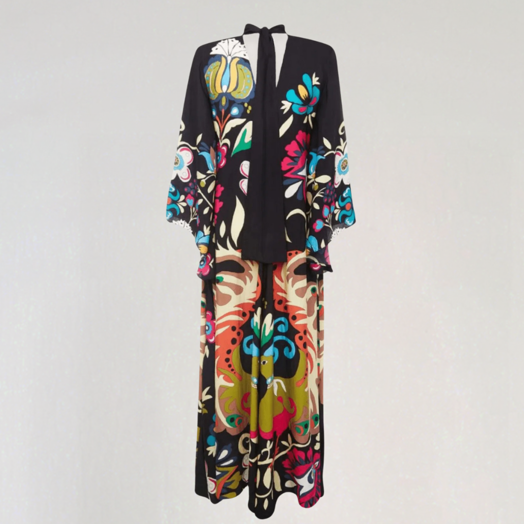 Inaya | Souprava Kimono – Bohemian Tisk a Široké Kalhoty