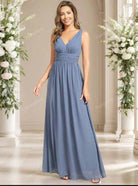Αυτή η μακριά φόρεμα χωρίς μανίκια έχει έναν καθαρό και κομψό σχεδιασμό. Ο V-λαιμός αναδεικνύει τη σιλουέτα. Ιδανικό για διάφορες περιστάσεις, συνδυάζει άνεση και στυλ.