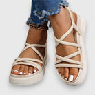Queste sandali piatte offrono un equilibrio perfetto tra leggerezza e supporto. Il loro cinturino elastico garantisce una vestibilità facile, mentre le bande incrociate aggiungono un tocco elegante al tuo outfit. Perfette per passeggiate, uscite estive o giornate rilassate.
