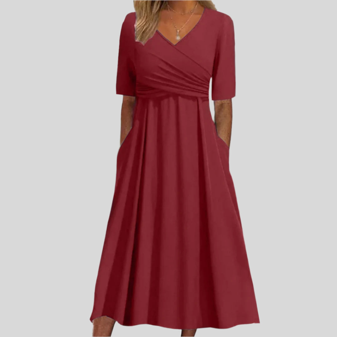 ラニア | ラグジュアリーなVネックロングスリーブドレス