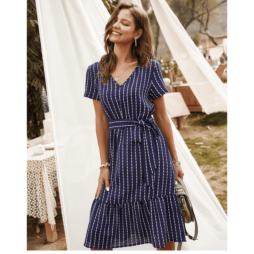 エリナ | ミディ丈の短袖夏ワンピース – 軽やかさとエレガンス