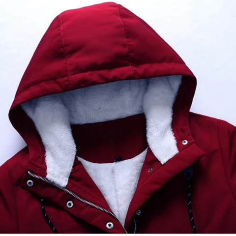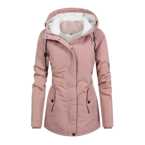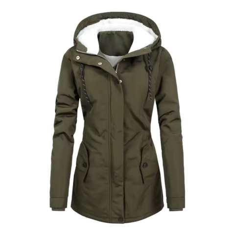 サニア | レディースロングジャケット — フード付き、ドローストリング、ボタン付きポケット