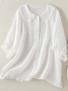 Ta koszula zapinana na guziki odsłania zwiewną i kobiecą sylwetkę. Jej kołnierz ozdobiony falbanami dodaje delikatnego i romantycznego akcentu. Jej wygodny krój sprawia, że jest idealnym wyborem dla eleganckiego stylu na co dzień.