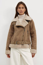 Ta krótka kurtka oferuje wyrafinowany wygląd, jednocześnie zapewniając przyjemne ciepło w zimowym sezonie. Jej krój podkreśla sylwetkę, a miękka tekstura zapewnia natychmiastowy komfort. Łatwo ją nosić na co dzień, oferując styl zarówno nowoczesny, jak i ponadczasowy.